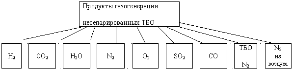 Вполне естественно из не сепарированных ТБО токсичных веществ не образуется, если не считать SO2 , который может образоваться из ТБО (за счет термического разложения меркантанов). Из СОЖ продуктами газогенерации могут быть: