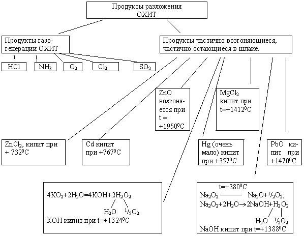 Наиболее опасные компоненты ОХИТ также разлагаются и протекает ряд процессов (4):