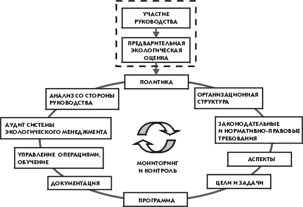 При всей гибкости, относительности международных стандартов в области экологического менеджмента они содержат одно абсолютное требование - следование принципу последовательного улучшения. Немедленное декларирование полного соответствия деятельности всем внешним нормам и условиям, максимальная экологическая эффективность производства не являются обязательными требованиями. В большинстве случаев подобные заявления, если они делаются, так и остаются заявлениями; кроме того, ничего идеального в этом мире не бывает. Конечно, необходимо собрать воедино все законодательные и нормативные требования, имеющие отношение к рассматриваемой деятельности, определить потенциальные возможности развития, подобрать и оценить примеры решения тех же проблем коллегами, конкурентами. Стремление соответствовать и поэтапное приближение к этой заветной цели, выбор реальных целей и времени их достижения гораздо более эффективны и результативны, особенно в условиях российских, с жестким и изменяющимся законодательством, нестабильной экономической ситуацией.