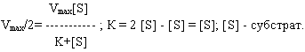 где К - константа Михаэлиса-Ментена: V=Vmax /2