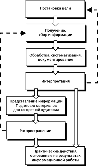 Приступая к работе с информацией, разумно поставить цель этой работы. Как мы увидим в дальнейших разделах этой главы, в хорошо организованной информационной работе цель определяет буквально все — от направлений поиска, источников информации и методов ее получения, до форм ее представления и способов распространения. Сама же цель информационной работы всегда состоит в приобретении и (или) распространении сведений, необходимых для осуществления конкретных действий, изменения поведения людей, принятия решений.