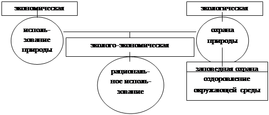 Окружающая природная среда служит условием и средством жизни человека, территории, на которой он проживает, пространственным пределом осуществляемой государственной власти, местом для размещения объектов промышленности, сельского хозяйства и других объектов культурно-бытового назначения. Таким образом, окружающая природная среда образует сложное понятие, в рамках которого исторически получили развитие две формы взаимодействия общества и природы. Первая — потребление природы человеком, использование природы для удовлетворения человеком своих материальных и духовных потребностей. Эта форма может быть названа экономической формой взаимодействия. Второй формой взаимодействия стала охрана окружающей природной среды с целью сохранения человека как биологического и социального организма и его естественной среды обитания. Эта форма получила название экологической формы.
