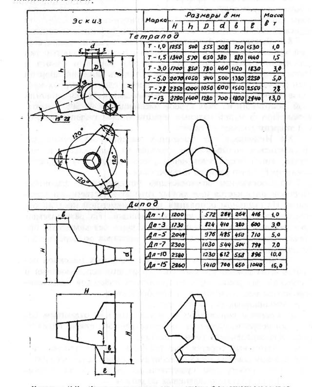 Для волногасящих прикрытий в приурезовой зоне рекомендуется применять четыре типа фасонных массивов: тетраподы, долосы, гексалеги и диподы. Это не исключает и применение других типов фасонных массивов.