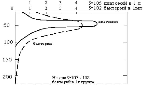 Рис. 3 Вертикальное распределение бактерий в океане