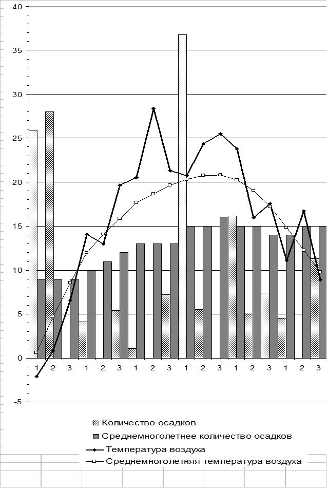 | Отклонение от ср. мн. осадков, мм | 16.9 | 19 | -9 | -5.9 | -11 | -6.6 | -11.9 | -13 | -5.8 | 21.8 | -9.5 | -16 | 1.2 | -10 | -6.6 | -9.5 | -15 | -3.7 |