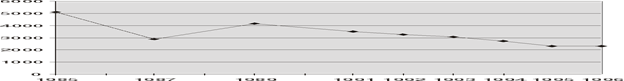 Прежде всего, следует отметить значительное снижение числа родов по каждому из контролируемых районов по сравнению с доаварийным периодом (рис. 5). Преимущественное снижение числа родов отмечалось в 1987 г., причем в Полесском районе на 40,4%, Народичском – на 33,1%, Козелецком – на