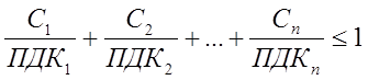 Некоторые вещества при одновременном присутствии в атмосфере воздухе обладают однонаправленным действием, т.е. эффектом суммации этом случае при оценке качества атмосферного воздуха должно выполняться следующее условие: