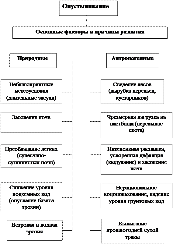 растительности, разрушение почв на значительных территориях связанных между собой, зависит от общей тенденции аридизации суши и усугубляются отрицательными последствиями неразумной деятельности человека.