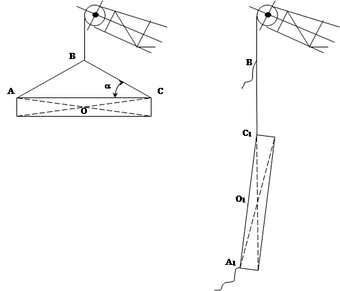 Рис. 1 Схема обрыва двухветвевого стропа.