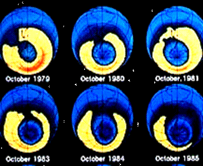 В 1985 г. специалисты по исследованию атмосферы из Британской Антарктической Службы сообщили о совершенно неожиданном факте: весеннее содержание озона в атмосфере над станцией Халли-Бей в Антарктиде уменьшилось за период с 1977 по 1984 г. на 40%. Вскоре этот вывод подтвердили другие исследователи, показавшие также, что область пониженного содержания озона простирается за пределы Антарктиды и по высоте охватывает слой от 12 до 24 км, т.е. значительную часть нижней стратосферы. Наиболее подробным исследованием озонного слоя над Антарктидой был международный Самолетный Антарктический Озоновый Эксперимент. В его ходе ученые из 4 стран несколько раз поднимались в область пониженного содержания озона и собрали детальные сведения о ее размерах и проходящих в ней химических процессах. Фактически это означало, что в полярной атмосфере имеется озоновая "дыра". (Озоновая дыра - разрыв озоносферы диаметром св. 1000 км, возникший над Антарктидой и перемещающийся в населенные районы Австралии. Озоновая дыра возникла предположительно в результате антропогенных воздействий[1]
