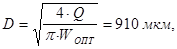 Полученное значение диаметра округляем до ближайшего типового значения D=900 мкм.