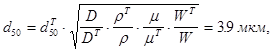 - диаметр частиц, улавливаемых с эффективностью 50% (для типового циклона СДК-ЦН-33