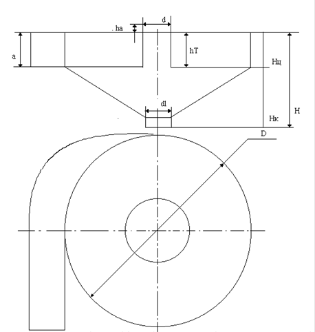 В соответствии с типом циклона по его диаметру определяем геометрические размеры циклона которые приведены в долях внутреннего диаметра: