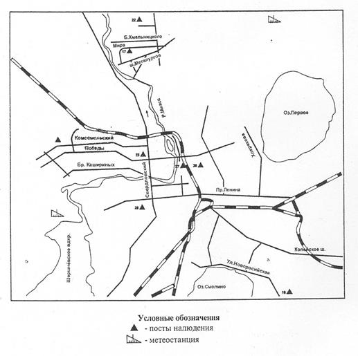 Наблюдения за загрязнением атмосферного воздуха в г. Челябинске проводится на 8 стационарных постах, расположенных в различных районах города: