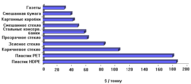 На диаграмме приведена типичная стоимость переработки вторсырья
