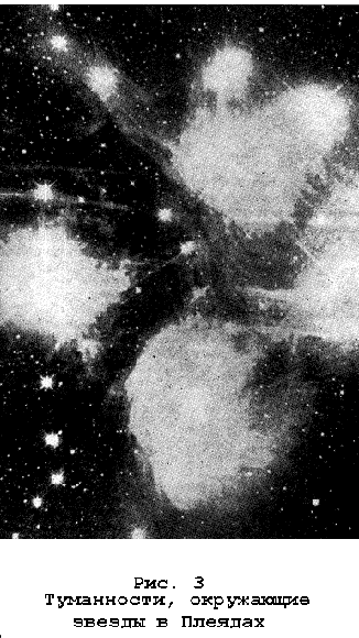Спектроскопические наблюдения Шейнера, хотя они были совершенно правильными, в значительной степени потеряли свою ценность после того, как Слайфер (американский астроном (1875-1969), челен Национальной АН. Научные работы в области астроспектроскопии.) открыл отражательный спектр туманности в Плеядах (рис.3), относительно которой было определенно известно, что она принадлежит Млечному Пути. Слайфер писал: