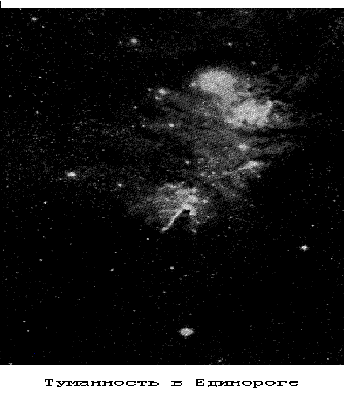 Существует много видов галактических туманностей. Их объединяет то, что они представляют собой большие концентрации межзвездного вещества, которое легко обнаруживает свое сушествование в виде темных или светящихся пятен. Существование темных областей в Млечном Пути было известно астрономам с тех пор как английский астроном Вильям Гершель провозгласил: “ Несомненно, это дыра в небесах!” И прошло немало времени, прежде чем они были правильно объяснены. В 1903 году Кларк писала :