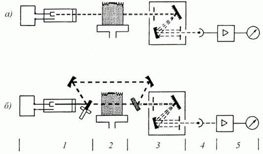 1 — источник резонансного излучения; 2 — атомизатор; 3 — монохроматор; 4 — детектор; 5 — система регистрации