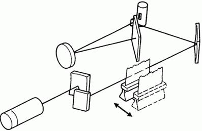 Псевдо-двухлучевой спектрофотометр. По мере развития метода все большее распространение получают однолучевые спектрофотометры с характеристика-ми двухлучевых приборов (псевдо-двухлучевые спектрофотометры). В них световой пучок от источника пропускается либо через атомизатор, либо в обход его с помощью колеблющегося зеркала или устройства, заставляющего вибрировать атомизатор (рис. 2).