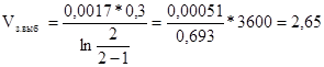 где Сн =0,1 г/л = 1кг/м³, Ск =0,001 г/л = 0,001 кг/м³ − начальная и конечная концентрации нефти в сточной воде;