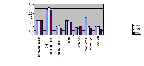 (0,9 ПДК) и отмечена в апреле 2005 г.Атмосферные осадки в течение года в 70,5 % случаев имели слабощелочную, в 20,9 % - нейтральную, в 2,3% - равноценную, в 6,2 % - щелочную реакцию.Новосибирским городским санитарно – эпидемиологическим надзором г. Новосибирска было проведено4101 наблюдение под факелом промышленных предприятий в эпизодических наблюдений за атмосферным воздухом. Городским санитарно – эпидемиологическим надзором произведен отбор проб на 15 предприятиях г. Новосибирска 244 пробы превысили допустимые значения, что составило 5,9 % от общего количества всех проб. Отбор проб осуществляется под факелами таких предприятий, как ОАО «Новосибирский жировой комбинат», хлебокомбинат «Инской», ФГУП НМЗ «Искра», ОАО «Новосибирский завод химконцентратов», ООО «Коландр», ЗАО «Спарта», ООО «Бином» и др.Под факелом ОАО «Новосибирский жировой комбинат» пробы воздуха отбирались на расстоянии 50 и 100 метров от источников выбросов с наветренной и подветренной сторон. Пробы отбирались по таким веществам как диоксид азота, аммиак, уксусная кислота и взвешенные вещества. Результаты исследований показали превышения санитарных норм по диоксиду азота до 1,3 ПДК, по аммиаку, уксусной кислоте и взвешенным веществам – проб с превышением ПДК не обнаружено. 2. Выбросы вредных веществ в атмосферу города