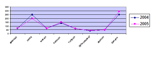 | 2005 | 84223 | 24,6 | 14988 | 4,4 | 9992 | 2,9 | 23484 | 68,1 |