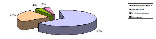 Рис.9. Структура валовых выбросов загрязняющих веществ в атмосферу г. Новосибирска в 2005 год