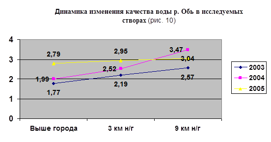 , аммонийному и нитритному азоту, железу общему, ртути низкий. Для фенолов и нефтепродуктов имел место средней уровень загрязненности.Величина УКИЗВ в 2005 г.