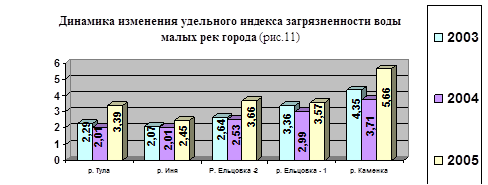 В целях определения влияния неорганических сточных вод с территорий предприятий, автодорог и жилой застройки на качество воды в малых реках города отобраны и проанализированы 115 проб, выполнено 2940 элементоопределений.