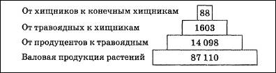 Рис. 7. Пирамида энергии: цифры – количество энергии, кДж • м-2 •r-1