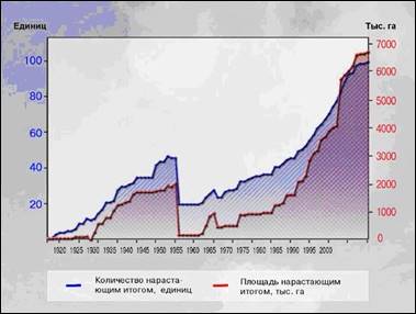 Рис. 10. Развитие сети национальных парков в России