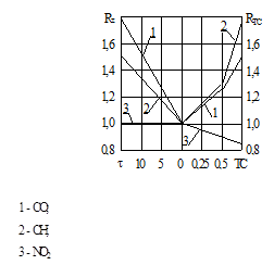 В основу побудування графіка змінення Rтс прийнято передумову, що рівень технічного стану, який впливає на рівні викидів ШР, які розглядаються, представляє собою міру охоплення експлуатуємих автомобілей контролем на токсичність. У відповідності до цього за нульовий рівень прийнятий такий стан, коли всі автомобілі перед виїздом проходять контроль на токсичність та автомобілі з перевищенням норм не випускатимуться для подальшої експлуатації. За одиницю прийняте таке положення, коли контрольна перевірка токсичності в експлуатації повністю відсутня. За рівень, рівний 0,5, принімають положення, коли всі автомобілі при ТО-2 проходять контроль на токсичність.