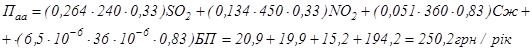 В розрахунку не враховувались рівні викидів СО та СН, тому що їх концентрації в атмосфері Харкова в1996 році не перебільшували допустимих рівней концентрації.