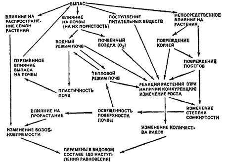 Рис. 1. Схема действия факторов выпаса (по А. Элленбергеру, 1963).