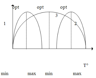 Каждый экологический фактор характеризуется определенными количественными показателями - интенсивностью и диапазоном действия. То есть влияние экологического фактора сильно зависит от его «дозировки». Действия фактора прежде всего характеризуются его амплитудой, размахом колебаний. В этом отношении еще со времен Сакса принято выделять три кардинальные точки для жизни (и отдельных функций) организма или вида (рис. 2) и значения интенсивности фактора.