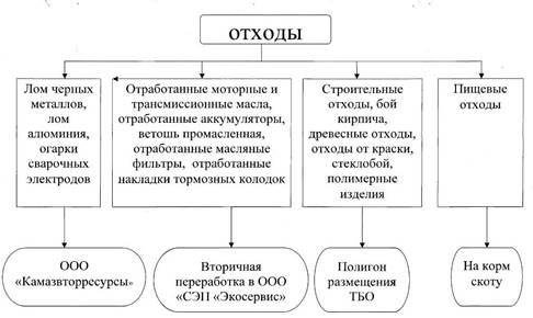 Лом черных металлов собирается на специально-оборудованной асфальтированной металлоплощадке s=10м2 для лома черных металлов. Вывоз металлолома с территории предприятия осуществляется 12 раз в год в кузове автомашины в ООО "КАМАЗВТОРРЕСУРСЫ".