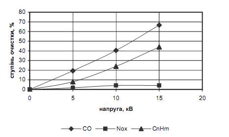 Технологія електрокаталітичної обробки паливного наддуву разом з технологією електрокаталітичного очищення дає можливість знизити вміст практично всіх компонентів відпрацьованих газів ДВЗ до необхідних норм.