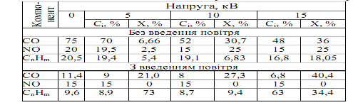 Таблиця 2.1.2.4 − Дані експериментів по нейтралізації токсичних сполук для холостого ходу