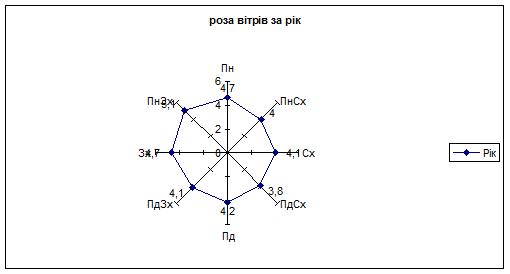 Таблиця 1.2.1 - Середня швидкість вітру за липень, січень, рік у місті Черкас