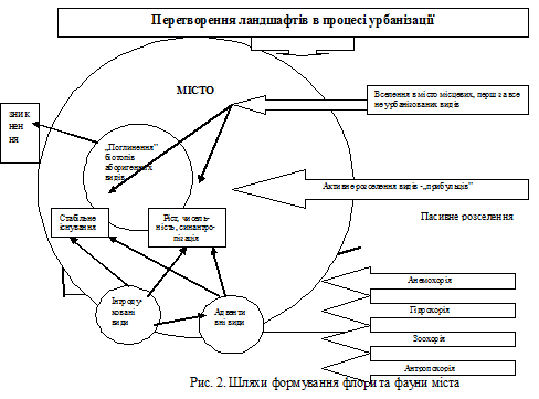 Процеси формування урбанізованої флори і фауни представлені на рис. 2.