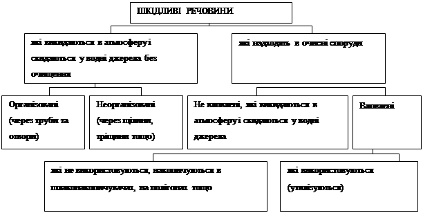 Рис. 1.3. Класифікація шкідливих речовин за ознаками очищення та використання
