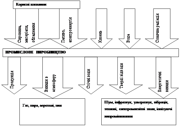 Рис. 1.4. Обмін речовинами та енергією сучасного промислового підприємства з навколишнім природним середовищем