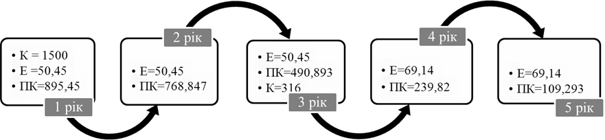 ПК1 = 500 + 1500 ×0,23 = 845 тис. грн.