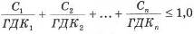 У тих випадках (а вони є найбільш типовими), коли в навколишнє середовище – воду або повітря – потрапляють різні забруднюючі речовини, використовують відношення фактичної концентрації С до ГДК для відповідної речовини: