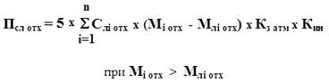 Плата за сверхлимитное загрязнение окружающей природной среды определяется путем умножения соответствующих дифференцированных ставок платы за загрязнение в пределах установленных лимитов на величину превышения фактической массы выбросов, сбросов загрязняющих веществ, объемов размещения отходов над установленными лимитами, суммирования полученных произведений по видам загрязнения и умножения этих сумм на пятикратный повышающий коэффициент.