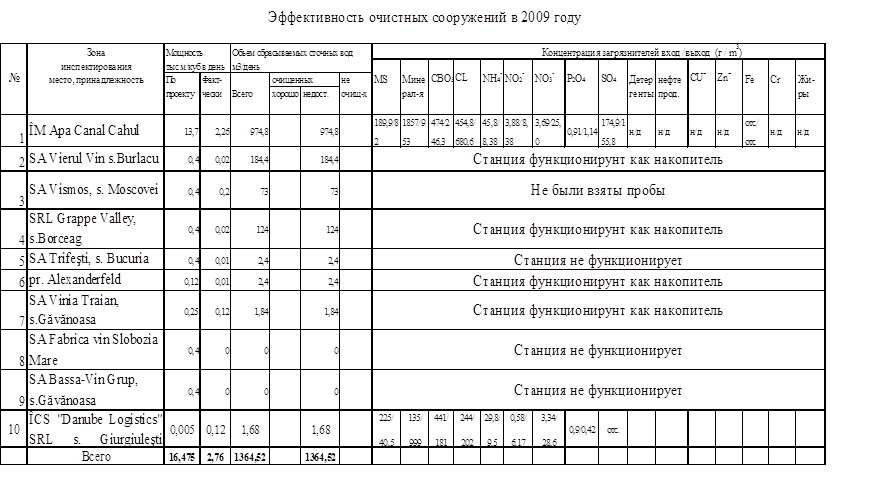 Таблица 4. Деятельность канализационно-очистных станций Кагульского района.