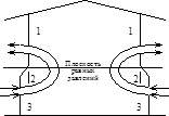 В летнее время открываются проемы 1 и 3, а в зимнее - 2 и 3. На определенной высоте, называемой плоскостью равных давлений, разность давлений равна 0. Ниже этой плоскости существуют разрежения воздуха, в результате чего происходит поступление наружного воздуха, а выше плоскости равных давлений существует избыточное давление, под действием которого происходит вытяжка загрязненного воздуха наружу. Преимущество аэрации состоит в том, что большие объемы воздуха подаются в помещение и удаляются без вентилятора. Недостаток - малая эффективность.