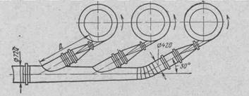 Конические циклоны в зависимости от производительности устанавливают одиночно или группами. При групповой установке (более двух циклонов) необходимо, чтобы направление вращения воздуха во всех циклонах было одинаковым.
