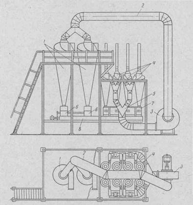Технологический процесс первичной обработки хлопка сопровождается значительным выделением пыли из технологических и транспортирующих машин в производственные помещения и атмосферу. Оседая, пыль загрязняет производственные помещения и территорию завода, создает неблагоприятные условия для работы людей и оборудования. Норма запыленности воздуха в производственных помещениях хлопкоочистительного завода - не более 10 мг/м3 , а отработавшего воздуха, выбрасываемого в атмосферу,- 150 мг/м3 . Для создания нормальных санитарно-гигиенических условий производится обеспыливание производственных помещений и отдельных пылевыделяющих установок. Перед выбросом отработавшего запыленного воздуха в атмосферу его также очищают от пыли.