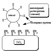Рис. 2. Распределительная хроматография с привитой фазой (нормально-фазный вариант).